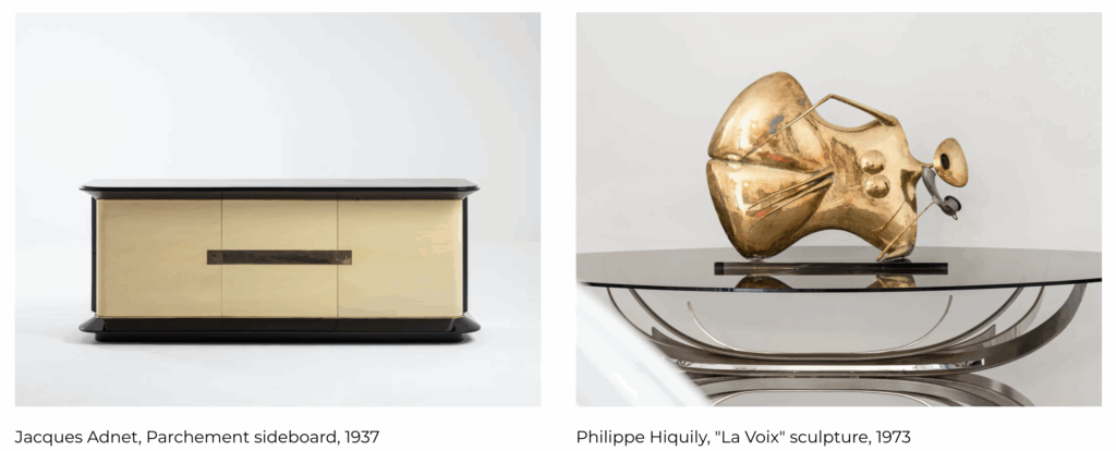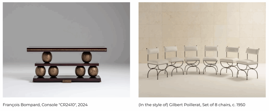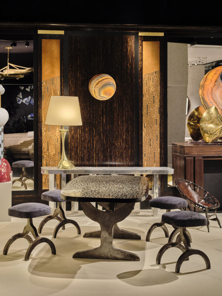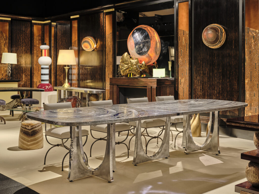 To complement these historic pieces, the gallery has invited two contemporary designers. Emmanuel Jonckers will present a “Royale” dining table in aeronautical metal and nickel silver, one of his most daring and spectacular creations.