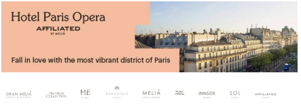 Discover our members in the windows of the Melià Paris Opéra hotel: Hôtel Paris O  péra Affiliated by Melia:    Address in Paris: 3 Bd Montmartre, 75002 Paris –   click here