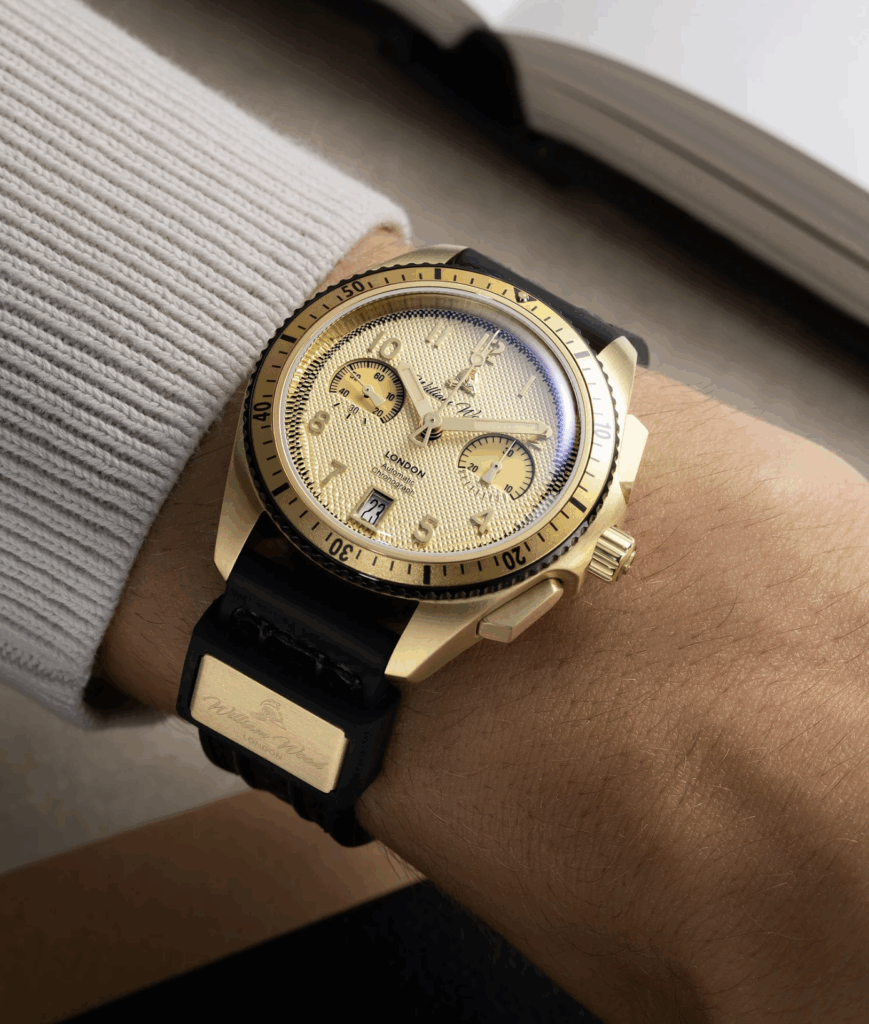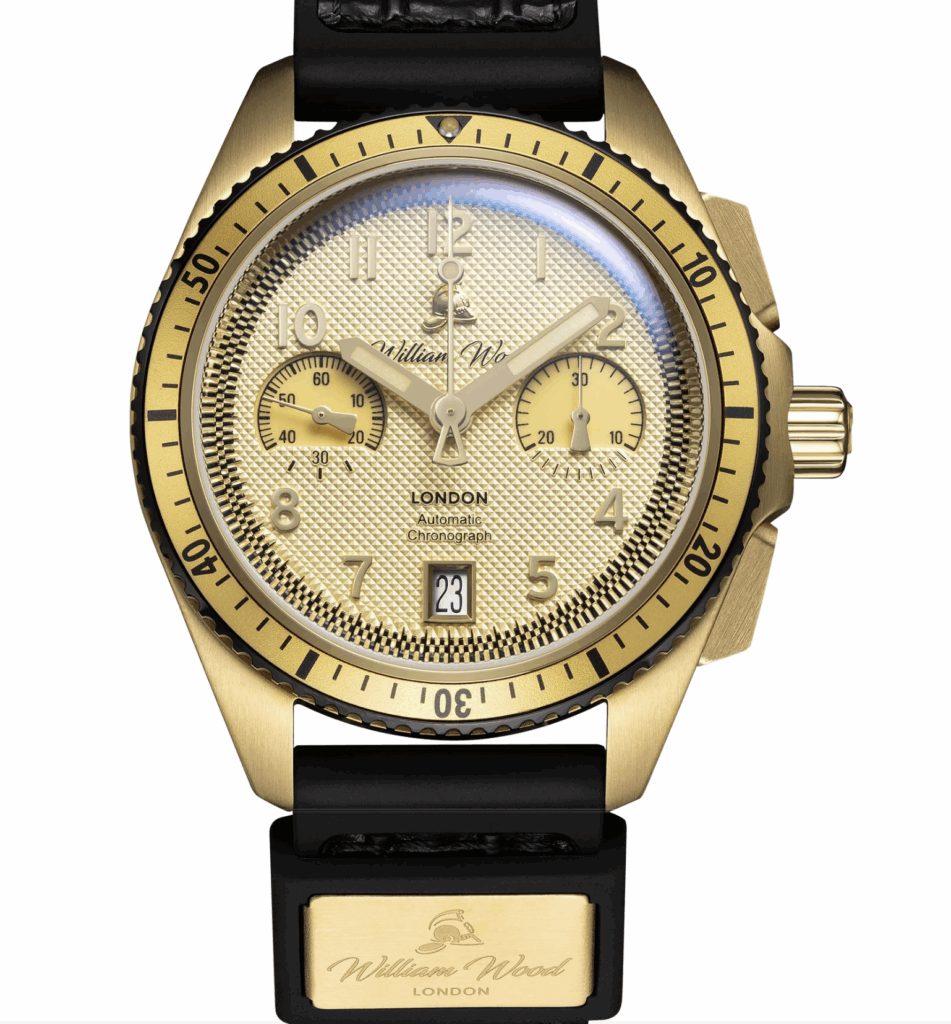 Priced at £2,995, the Vintage Triumph is a limited edition chronograph watch inspired by vintage style and celebrating William Wood’s philosophy of transforming the history of firefighting into modern luxury. Each piece features a crown made from a 100-year-old British brass firefighter’s helmet, connecting each wearer to a century of bravery and service.